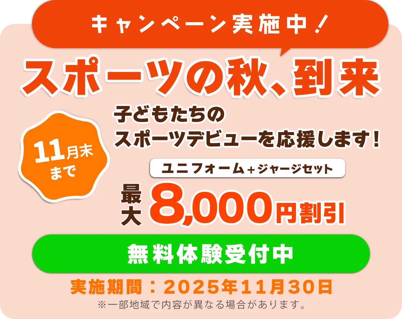 🎉10月~11月中体験で入会いただいた方 限定!ユニフォーム最大8,000円割引キャンペーン🎁
